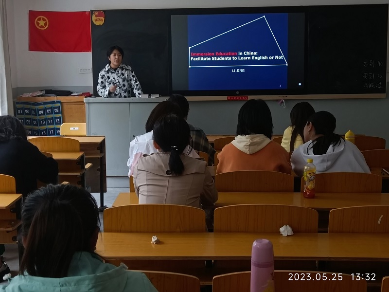 首先,李婧老师进行了教学示范。李老师就浸入式英语教学的起源与基本概念进行简要讲解。整个教学设计围绕浸入式教学的教师能力需求和学习者语言习得效能两个层面对当前浸入式英语课程的进展和成果进行阐述。整个教学活动设计丰富多彩,有助于教研室成员拓展思路、创新教学设计。其次,教研室全体成员就该教学理念进行讨论,探究如何有效的提升所带班级英语学习的效果。最后,教研室主任张爱荣老师对本次观摩活动进行了总结,她强调不断地更新教学理念的同时还应当结合所带学生的学情调整教学方式。
