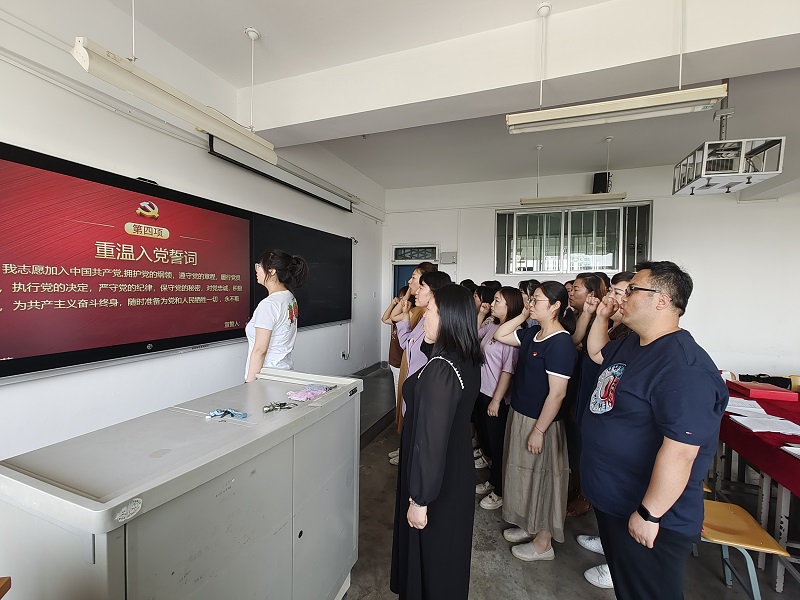 鲜艳的党旗映红脸庞,铿锵的誓词催人奋进。“我志愿加入中国共产党,拥护党的纲领,遵守党的章程,履行党员义务……随时准备为党和人民牺牲一切,永不叛党。”活动中,党员们在外语学院教工支部组织委员汪敏荣同志的带领下,面向鲜红的党旗高举右拳,再次许下庄严承诺。铿锵有力的宣誓声,表达了大家对党的无限忠诚和热爱以及听党话、跟党走的坚定决心。