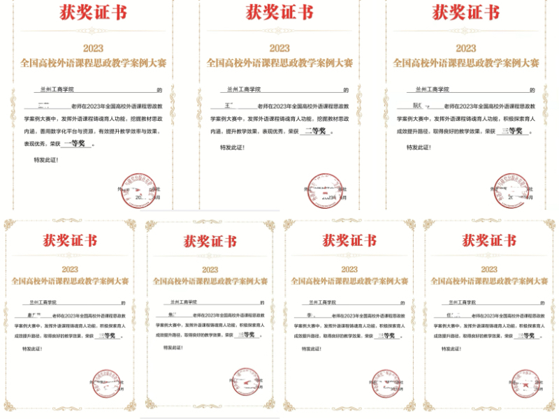 2023年8月,外语学院7位教师参加了全国高校外语课程思政教学案例大赛并喜获佳绩,荣获个人赛一等奖1项,二等奖1项,三等奖5项。本次大赛由外语教学与研究出版社于2023年5月启动,旨在通过搭建沟通交流课程思政育人实践的赛事平台,全面提升课程思政建设的创新性与有效性,助力高校服务国家战略、培养新时代所需的高素质外语人才。