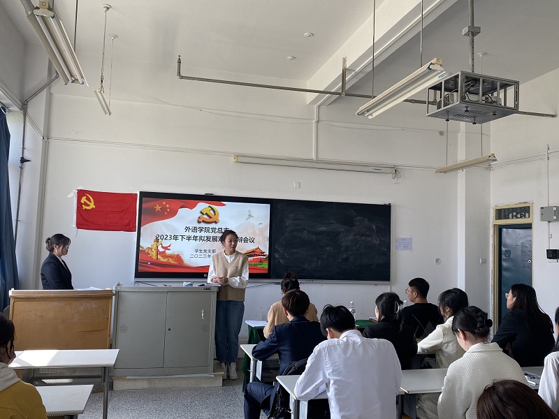 为进一步加强和改进发展学生党员工作,把牢学生党员发展的“入口关”,切实保证新发展党员质量,根据《中国共产党章程》和《中国共产党发展党员工作细则》和学校党委相关文件要求,结合我院党总支工作实际,于10月16日在4号教学楼609室在召开外语学院党总支拟发展对象公开答辩会议,出席本次大会的领导有外语学院党总支书记张钰同志、外语学院学生党支部书记兼党政秘书滕婧茹同志、外语学院团总支书记田煜同志。