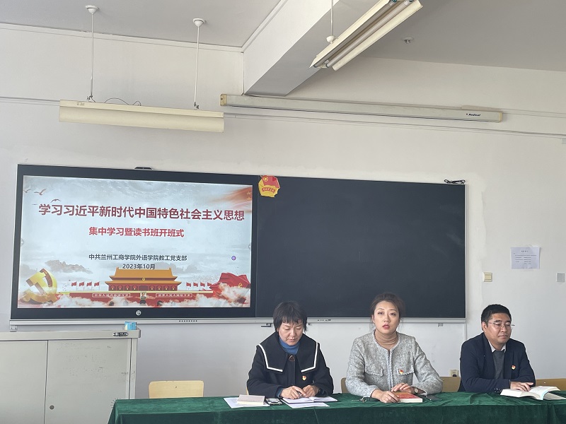 为进一步推动落实《兰州工商学院学习贯彻习近平新时代中国特色社会主义思想主题教育工作方案》,根据外语学院《学习贯彻习近平新时代中国特色社会主义思想主题教育工作任务时间安排表》,结合我院教工党支部工作实际,于10月19日在4号教学楼409室举行外语学院教工党支部集中学习贯彻习近平新时代中国特色社会主义思想暨读书班开班仪式,本次开班仪式由外语学院教工党支部书记权志成主持,外语学院党总支书记张钰、教工党支部副书记詹秀伟及全体教工党员参加。
