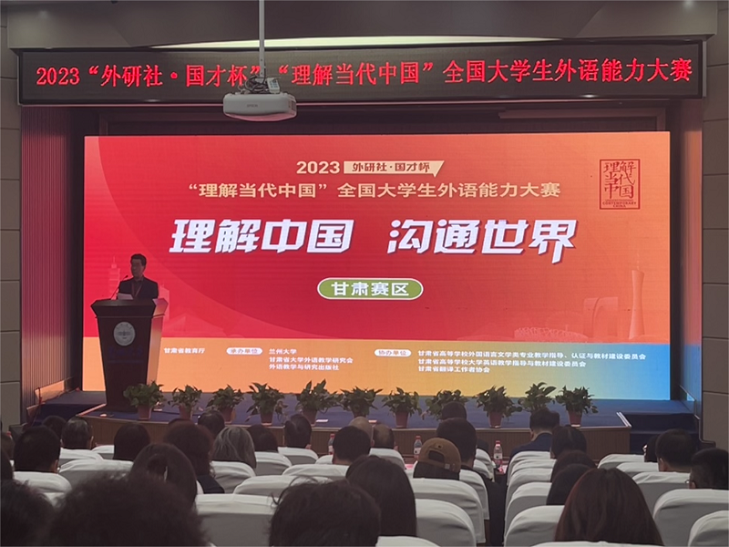 2023年10月28日,由甘肃省教育厅主办,兰州大学、甘肃省大学外语教学研究会、外语教学与研究出版社承办的2023 “外研社·国才杯”大学生外语能力大赛甘肃区复赛在兰州大学举行。大赛旨在引导当代大学生聚焦国家时事热点,理解当代中国,深入领会习近平新时代中国特色社会主义思想的核心要义,深刻认识当代中国的发展与成就,向国际社会分享中国改革与发展的经验与智慧。