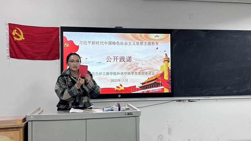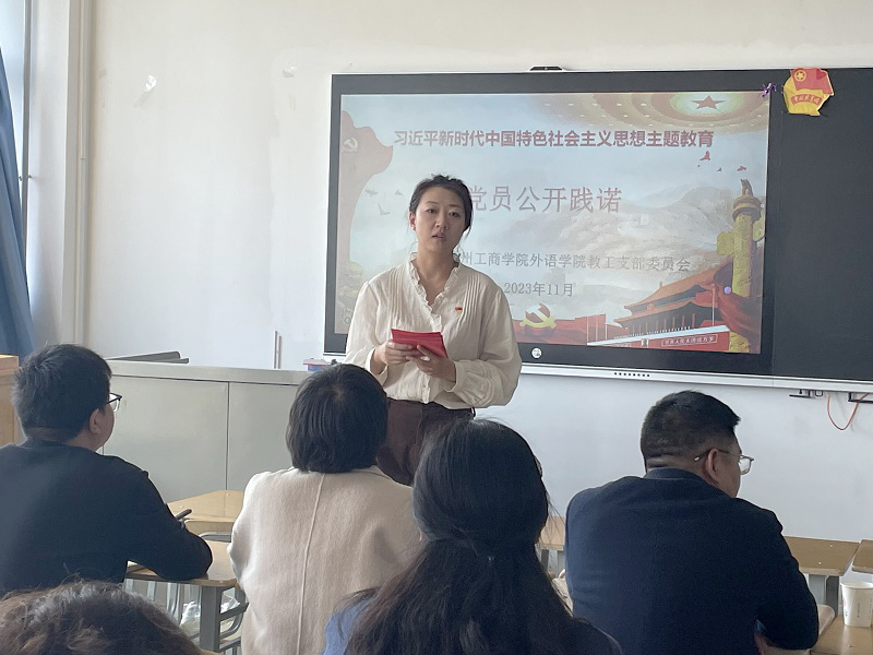 本次主题党日活动由外语学院党总支统一组织,教工党支部和学生党支部同时开展,全体党员认真对照党章和文件要求,围绕思想建设、岗位职责、目标任务三个方面做出公开承诺,并严格按照个人承诺事项履职践诺。