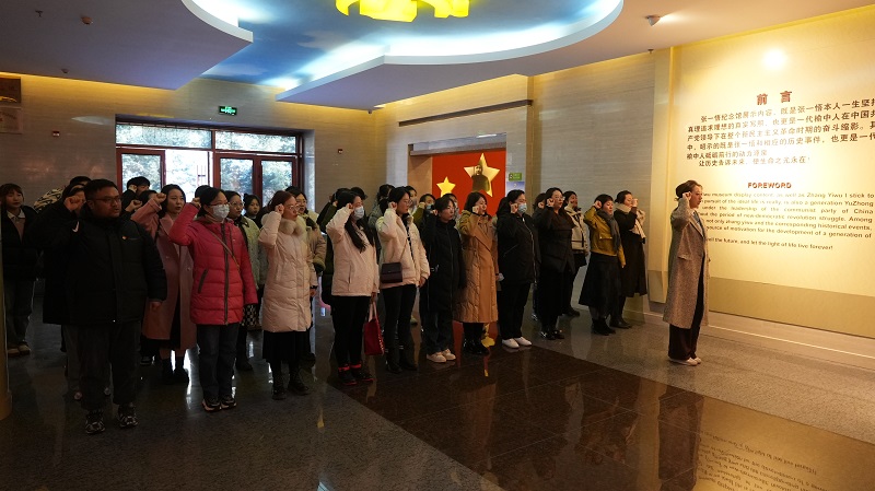 为深入学习贯彻习近平新时代中国特色社会主义思想主题教育,扎实推动主题教育走深走实,用红色资源和红色文化充实主题教育活动,11月16日下午,外语学院党总支组织全体教工党员及部分学生代表前往张一悟纪念馆进行红色基地参观学习。