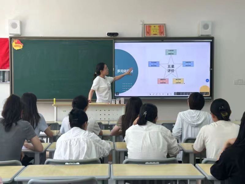 此次研讨活动中,陈小玲老师以《教学过程中的多元化教学评价》为主题进行了分享。在此过程中,陈老师指出了教学评价的重要性,对传统教学评价和现代教学评价进行了对比论述,提出现代教学评价中社交媒体评价的重要性,并结合自身的教学经验,展示了提高反馈效果的策略,反馈的“及时性、具体性、鼓励性和多样性”,这些策略不但可以用在英语学科教学中,也同样适用于跨学科领域。