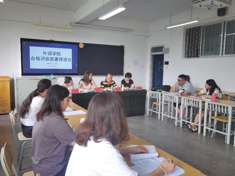 为了做好学校本科教学工作合格评估各项工作,推进学校本科教学工作合格评估顺利开展,7月23日上午午,外语学院在4-407召开本科教学工作合格评估部署及推进大会。甘肃省外国语言文学类专业教学指导、认证与教材建设委员会负责人、博士生导师,曹进教授,外语学院党总支书记 行政院长张钰,外语学院教学副院长詹秀伟,行政院长助理王佳宁,各教研室主任及教师代表参加了会议。会议由张钰主持。