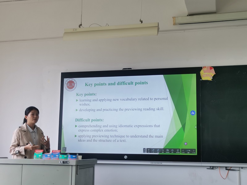 在磨课活动中,四位新进教师针对本学习承担的课程分别进行了说课和现场教学,充分展示课程设计、教学活动与教学方法,现场观摩教师针对教姿教态、教学方法、课程设计等方面内容进行全面点评,并对智慧黑板、语音实验室等教学设备和仪器的使用提出了指导意见。