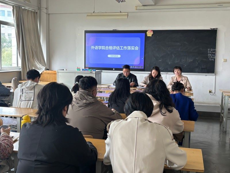 为进一步落实10月10日下午召开的兰州工商学院2024-2025学年度第一学期全校教职工大会精神,全面推进本科教学合格评估工作进展,10月11日下午,外语学院在明辨楼409召开本科教学合格评估工作落实会,会议由教学副院长詹秀伟主持,全体教职工参加了会议。