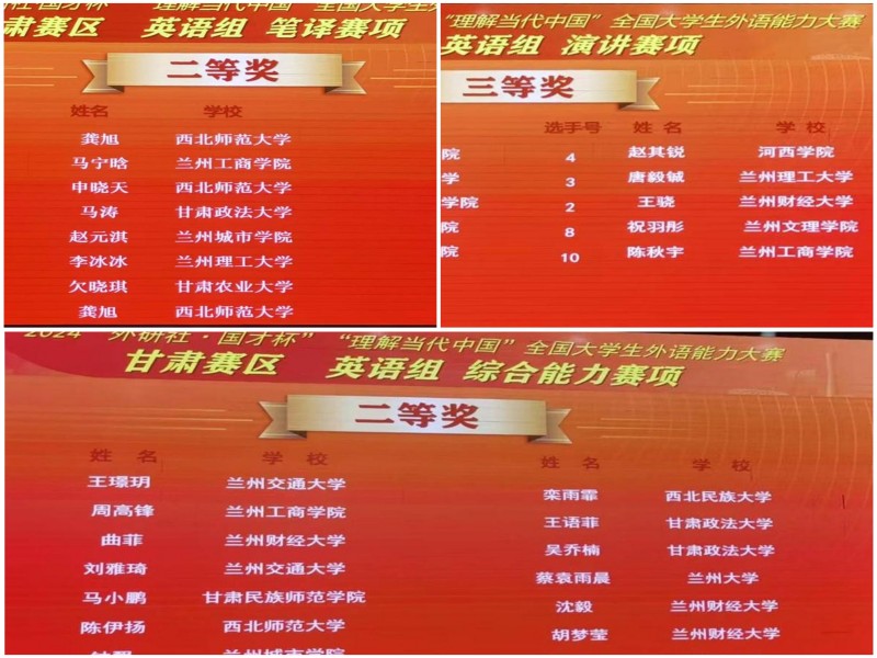 我校在2024年“外研社·理解当代中国”全国大学生外语能力大赛甘肃省赛中 喜获佳绩