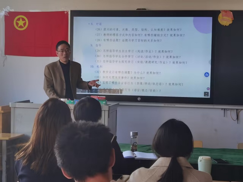 接着,教学常务副校长宿光平教授做了指导发言。宿校长对外语学院在青年教师培养方面所做的努力给予了充分肯定,并对青年教师们提出了殷切希望。他强调,青年教师要牢记立德树人根本任务,树立终身学习的理念,不断更新教育观念,提升教学技能,努力成为教学骨干。同时,宿校长还鼓励青年教师要积极参与教学改革与创新,不断提高自己的教学水平和创新能力。