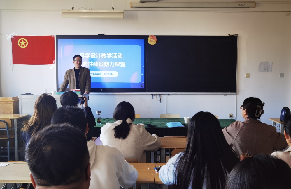 随后,詹秀伟副教授以《科学设计教学活动创造性建设魅力课堂》为题,为青年教师们带来了一场精彩的课堂教学设计讲座。讲座中,詹秀伟深入浅出地讲解了如何根据教学目标和学生特点科学设计教学活动,如何通过创新教学手段和方法增强课堂的吸引力和感染力。她结合自己丰富的教学经验,分享了课堂评价的观测点和多个成功的教学案例,为青年教师们提供了宝贵的借鉴和启示。