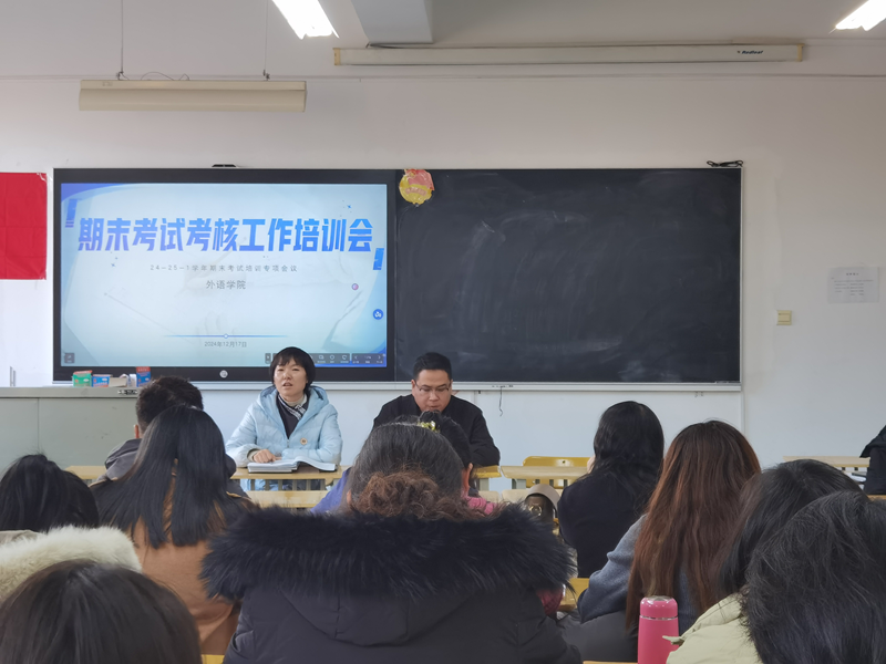 12月17日,外语学院在明辨楼409教室召开期末考试考核工作培训会,学院党总支书记、行政院长晋如意、教学副院长詹秀伟及全体教师参加了此次会议,会议由教学副院长詹秀伟主持。