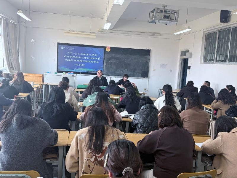 为扎实推进本科教学合格评估准备工作,全面提升教育教学质量,外语学院于4月3日下午在明辨楼409教室召开本学期教学工作会议暨本科教学工作合格评估专题会。学院教学院长王谋清、教学副院长詹秀伟及全体专任教师参加。会议围绕教学规范、评估指标落实及质量提升展开深入研讨。