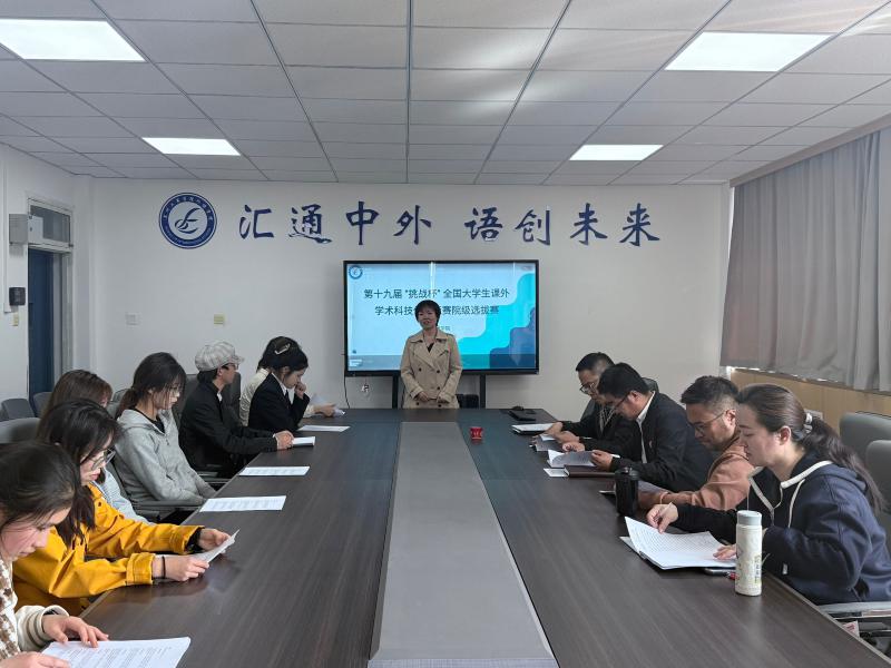 4月28日,为积极备战第十九届“挑战杯”全国大学生课外学术科技作品竞赛校级决赛,外语学院于4月28日下午在明辨楼会议室举行院内选拔赛。外语学院行政院长兼书记晋如意、教学副院长詹秀伟、教学院长助理袁枫茸及各参赛团队指导教师参加此次选拔赛,尚春雨、张爱荣、邵红伟三位老师担任此次比赛评委。