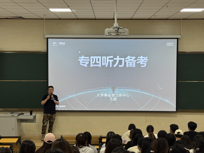 为助力学生顺利通过英语专业四级考试,提升外语学院整体学风,学院于6月6日在综合楼c603教室举办了学风建设系列活动之英语专业四级冲刺专题讲座。本次讲座特邀兰州新东方大学事业部资深教师王皓老师,为同学们主讲听力与写作技巧。