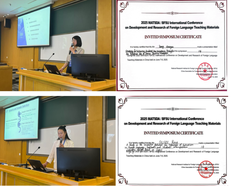 在本次大会的平行论坛环节,曹进院长担任其中一个分论坛的主持人。在分论坛中,康小燕老师分享了以《以用促学:外语教材的有效使用促进学生核心素养提升的策略研究》为题的论文,提出通过教材的内容重构、任务分层、评价迭代三大策略,提升学生语言能力、文化意识、思维品质和学习能力;管荣老师分享了以《基于语料库的外语教材家国情怀表达与学生语言输出关联性研究》为题的论文,结合自建语料库,揭示了材特征对学生输出内容丰富度和情感强度的正向影响。