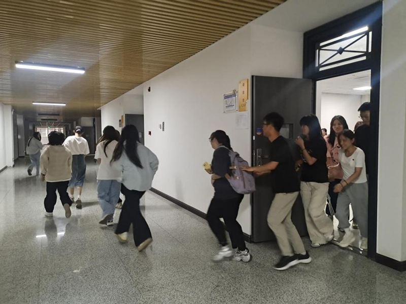 活动中,詹院长和两位辅导员围绕实验室安全规范、设备操作流程、危险源识别及突发事件应对等内容进行了详细讲解,并结合典型案例分析了实验室常见安全隐患及防范措施。随后,参训师生在综合楼语音室模拟了火灾、地震等突发情况的应急处理流程,确保掌握正确的逃生与救援方法。