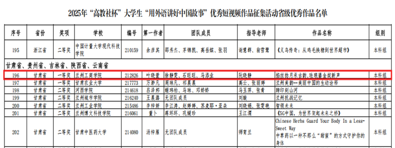 近日,由高等教育出版社主办的“高教社杯”大学生“用外语讲好中国故事”优秀短视频作品征集活动省级评选结果揭晓。我校外语学院阮晓静老师指导的学生团队凭借作品《掐丝捻月承古韵,珐琅鎏金绽新声》荣获省级一等奖,展现了外语学院在外语教学与跨文化传播领域的卓越成果。