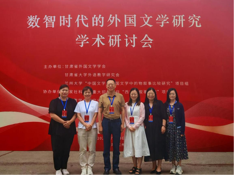 7月18-19日,由甘肃省外国文学学会、甘肃省大学外语教学研究会、兰州大学“中国文学和英国文学中的物叙事比较研究”项目组联合主办的“数智时代的外国文学研究”学术研讨会在兰州大学隆重举行。我院教学院长王谋清教授、教学副院长詹秀伟、以及专任教师杨琳、阮晓静、宋婷婷、厚尼娜应邀参会,与全国20余所高校的百余名学者共探数字人文与文学研究的融合创新。