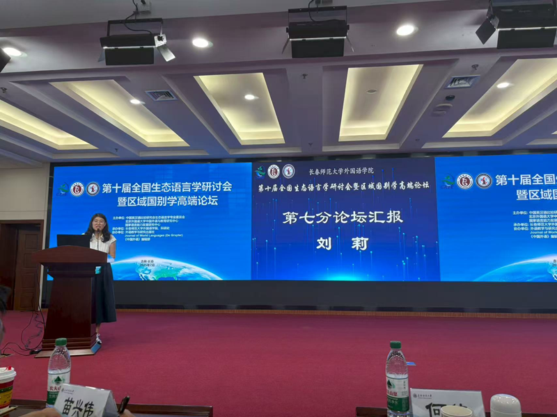 7月17至20日,由中国英汉语比较研究会生态语言学专业委员会、北京外国语大学国家语言能力发展研究中心及中国外语与教育研究中心联合主办的第十届全国生态语言学研讨会暨区域国别学高端论坛在长春师范大学召开。我院刘莉老师受邀参加此次盛会,并担任专题分论坛的主持人。