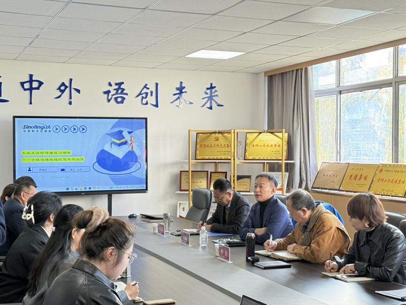 为响应国家战略需求,推动教育教学改革,拓宽师生国际视野,10月19日上午,外语学院特邀华语教学出版社副社长贾巍巍博士(教育部学位中心学科评估专家、中国高等教育学会数字化课程资源研究分会常务副理事长),在4号楼313会议室开展以“大学生国际传播能力培养——全球治理视域的思考与实践”为主题的专题学术讲座,全体教师参会。