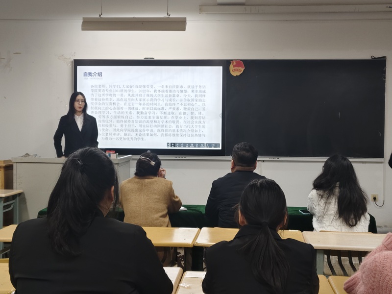 汇报环节中,12 名候选人以 PPT 演示为辅助,结合自身经历进行了生动而深刻的陈述。他们的故事各有侧重,却同样传递着励志向上的力量:有的是专业成绩与综合测评始终稳居年级前列,屡获省级、校级学科竞赛奖项的 “学习达人”,用扎实的学识诠释着精益求精的求学态度;有的是兼顾班级管理、学生社团工作与志愿服务的 “行动先锋”,在组织策划、公益服务中锤炼责任担当,以实际行动践行青年使命;更有部分候选人分享了自己在逆境中坚守初心、奋力拼搏的经历,用不懈的努力打破困境,生动诠释了 “励志” 二字的深刻内涵。汇报过程中,候选人以详实的数据呈现学业成果,用鲜活的案例讲述成长故事,不仅充分展现了外语学子扎实的专业素养与全面的综合能力,更传递出当代青年不畏艰难、奋勇争先的青春正能量,赢得现场评委与观众的阵阵认可。