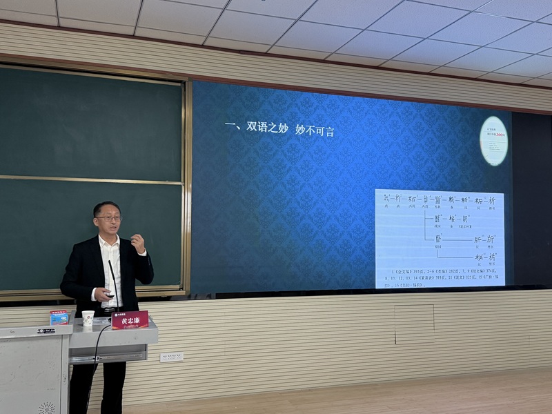 为深化全院师生对英汉双语的认知,打通从“学习”到“悟妙”的关卡,实现教学效率和语言能力的“开挂”式提升,10月22日外语学院特邀广东外语外贸大学黄忠廉教授作题为“英汉语悟妙 教与学开挂”的主题讲座,讲座由外语学院党总支书记、行政院长晋如意主持。