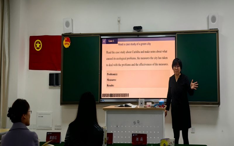 10月24日下午,外语学院在综合楼A104教室开展第二期“名师示范课堂”系列活动。本次活动以“大学英语教学新路径探索”为主题,特邀请西北师范大学外国语学院俞婷教授教学团队为我院教师传经送宝。