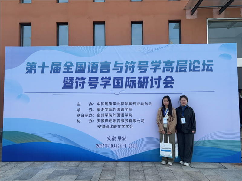 10月24日-26日,由中国逻辑学会符号学专业委员会主办、巢湖学院外国语学院承办、宿州学院外国语学院联合承办的“第十届全国语言与符号学高层论坛”在巢湖学院顺利召开。我院专任教师马雯、靳海芳参加了此次会议。