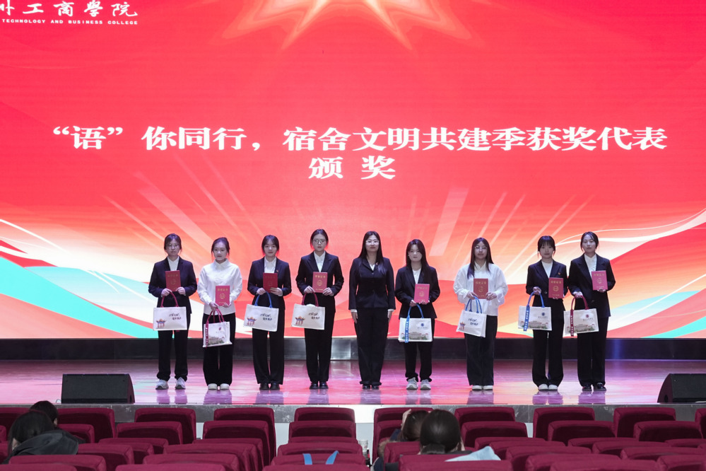 颁奖仪式上,参会领导为“语你同行”宿舍文明共建获奖代表、“学风建设月” 先进个人及集体、“外研社・国才杯” 等各类竞赛获奖学子分批颁奖,掌声阵阵中,既传递了学院对优良学风的重视,也为全体学子树立了可学可及的榜样标杆。