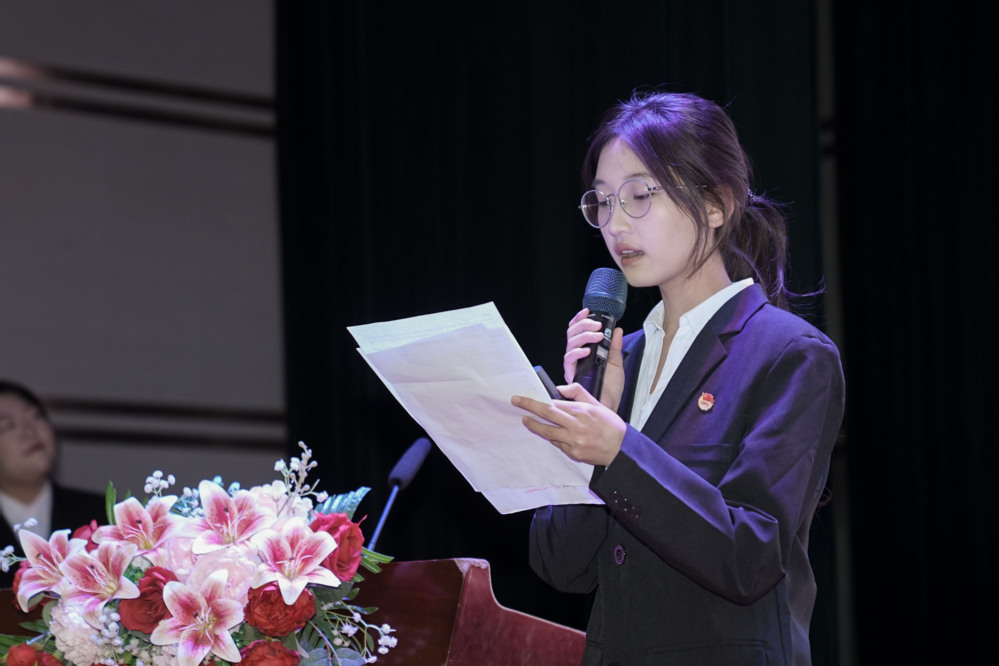 随后的学风表彰环节学院党总支书记兼行政院长晋如意充分肯定学生代表在学风建设与文化传承中的亮眼表现并寄语同学们以红色精神为引领,在求学路上笃行不怠。随后,学院领导依次宣读各类表彰决定分别就“学风建设月”先进典型外语竞赛获奖宿舍文明共建季获奖情况进行宣读