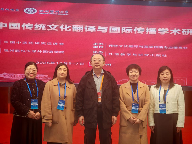 12月5日-7日,第五届中国传统文化翻译与国际传播学术研讨会在温州医科大学召开。外语学院院长曹进教授、专任教师詹秀伟、汪凤、韩世霞和阮晓静受邀参会。来自全国各地的专家学者齐聚一堂,共商中国传统文化翻译与国际传播大计,同探数智时代学科发展前沿。