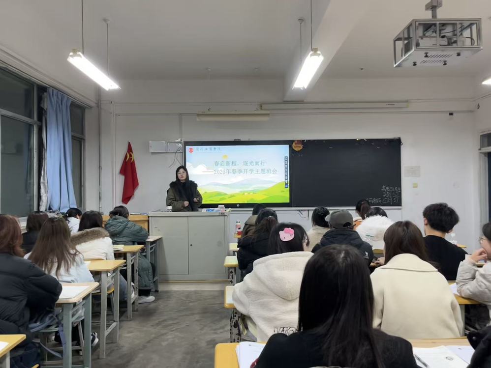 为深入贯彻立德树人根本任务,引导学生迅速收心归位、锚定成长方向、凝聚奋进力量,3月1日,外语学院统筹谋划、精准施策,组织全体辅导员面向各年级、各班级分层分类开展开学初系列主题班会,以“春启新程,逐光而行”“暖心促就业、逐梦向未来”“新学期,新气象”为核心主题,紧扣不同年级学生发展需求,为新学期学院育人工作开好局、起好步筑牢思想根基、夯实行动基础。