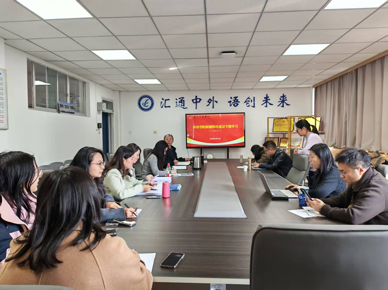 学院将以此次专题学习为契机,进一步健全和完善学院师德师风建设长效机制,持续加强师德教育、强化师德监督、严格师德考核,将师德师风要求贯穿于教师管理和职业发展全过程,引导全体教师坚守为党育人、为国育才的初心使命,以德立身、以德立学、以德施教,为培养担当民族复兴大任的时代新人贡献外语学院的智慧与力量。