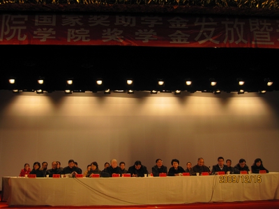 2009年12月15日下午5:00,陇桥学院国家奖助学金、学院奖学金发放暨表彰大会在体育馆隆重召开,大会对我院获奖的先进集体和优秀个人进行了表彰。学院董事长、院长完颜弟,常务董事、副院长陆兆兴,常务董事、党委副书记李韫章,学院党委书记王新兰,副院长江合宁,副院长杨培权,党委书记助理、学生工作部部长,学生资助管理中心主任马义哈等学院领导出席,学院各部门、处室的领导以及各系的领导参加了表彰大会。大会由党委副书记李玉仓主持。