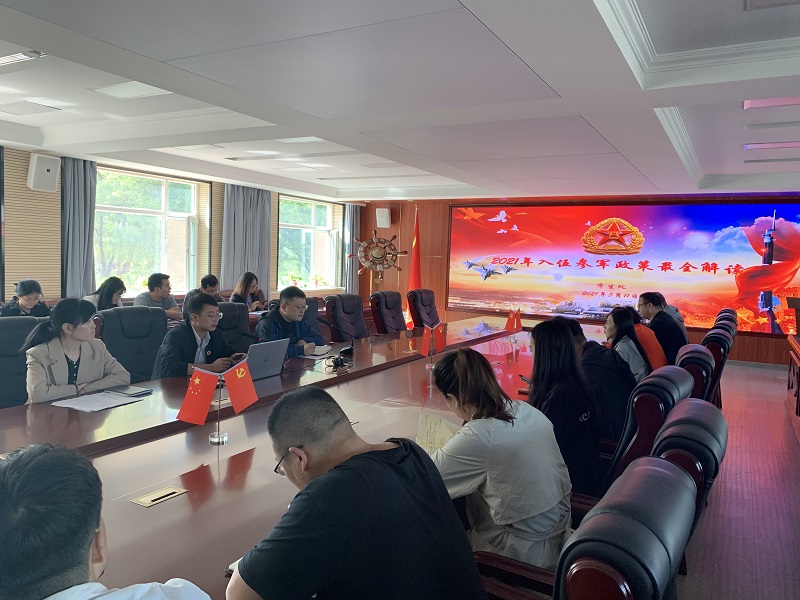 会上,田科长就2021年“两征两退”改革,兵役登记(男兵)和应征报名(女兵),入伍具体条件,入伍优待政策进行了详细解读,并帮助辅导员老师熟悉网上应征流程,通过辅导员老师向学生做好政策宣讲,做到精准宣传,帮助每一位大学生充分了解国家征兵政策及各项优惠政策,激励符合条件的学生积极参军报国。