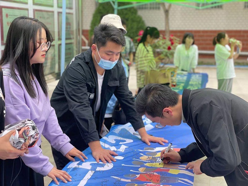 5月25日中午,心理健康教育中心在丰膳斋门口举行了大学生心理健康日大型签名和爱心祝福活动。活动通过组织开展祝福签名、爱的抱抱、线上心理知识问答等多种形式,广泛普及心理健康知识,营造和谐健康的校园心理文化氛围。