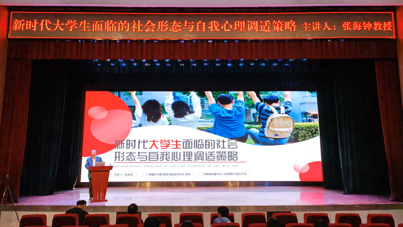 5月26日下午,兰州城市学院张海钟教授应邀为我校师生做题为“新时代大学生面临的社会形态与自我心理调适策略”的报告。学校执行校长路文江教授出席会议,报告会由学生处处长马进宝主持。张海钟教授以新时代大学生生存发展的经济形势开篇,结合心理健康教育这一高校人才培养体系的重要组成部分,深入阐述了新时代大学生面临的主要心理问题及其成因,特别对大学生学习心理问题、社交心理问题、应激心理问题等多个方面进行了详细阐述,并对大学生心理问题的自我调适策略提出了明确清晰的思路。
