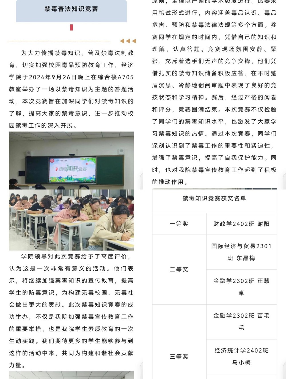 在一系列禁毒宣传教育活动中,我校学生踊跃参与,展现出极高的热情和积极性。各学院全覆盖开展了禁毒知识竞赛,100%全员参与;主题班会教育活动中,学生们积极发言,各抒己见,分享自己对禁毒的深刻见解,讨论氛围热烈且深入;创意作品征集活动中,学生们大展身手,以绘画描绘禁毒决心,用书法书写禁毒信念,借短视频传递禁毒力量,各类优秀作品传递着禁毒的信念,展现出我校师生对拒毒禁毒的坚定态度。