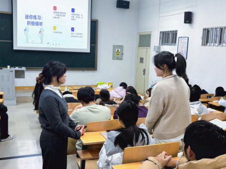 我校兼职校外心理咨询师贾颖婷老师在本次活动众面向全校心理委员开展了专题技能培训,进一步推动心理委员在班级心理健康工作中发挥骨干作用。培训围绕活动方案设计、团体带领技巧、突发状况应对及团体动力洞察等核心能力展开,通过理论与实践相结合的方式,系统提升了心理委员的专业素养与服务能力。全校两百余名心理委员分批参与,培训为心理委员后续在班级中自主开展心理健康活动奠定了坚实基础。