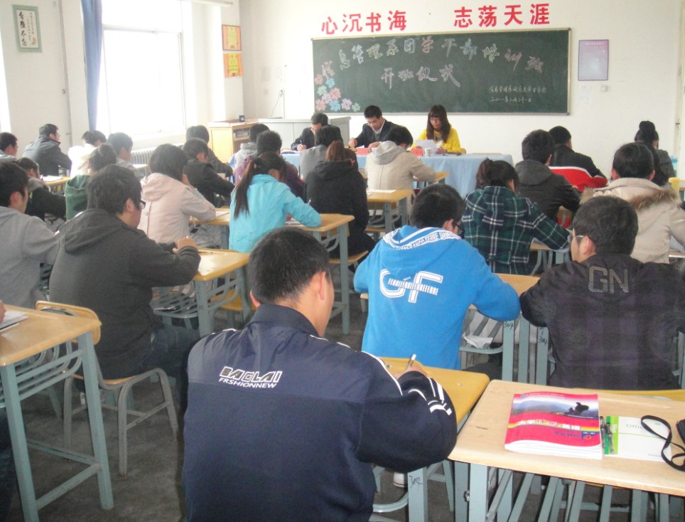 331下午430,由我系团总支学生分会举办的第一期学生干部培训班开班仪式在善问楼304教室隆重举行。特邀请了院党委书记助理、团委书记、学工部部长马义哈书记,系党总支书记张计强书记出席了开班仪式。会议由系团总支书记刘海娟老师主持,系团总支、学生分会主要学生干部,学生社团主要负责人,学生党支部副书记、各班党课小组组长及各班班长、团支书共50余人参加了本次培训。