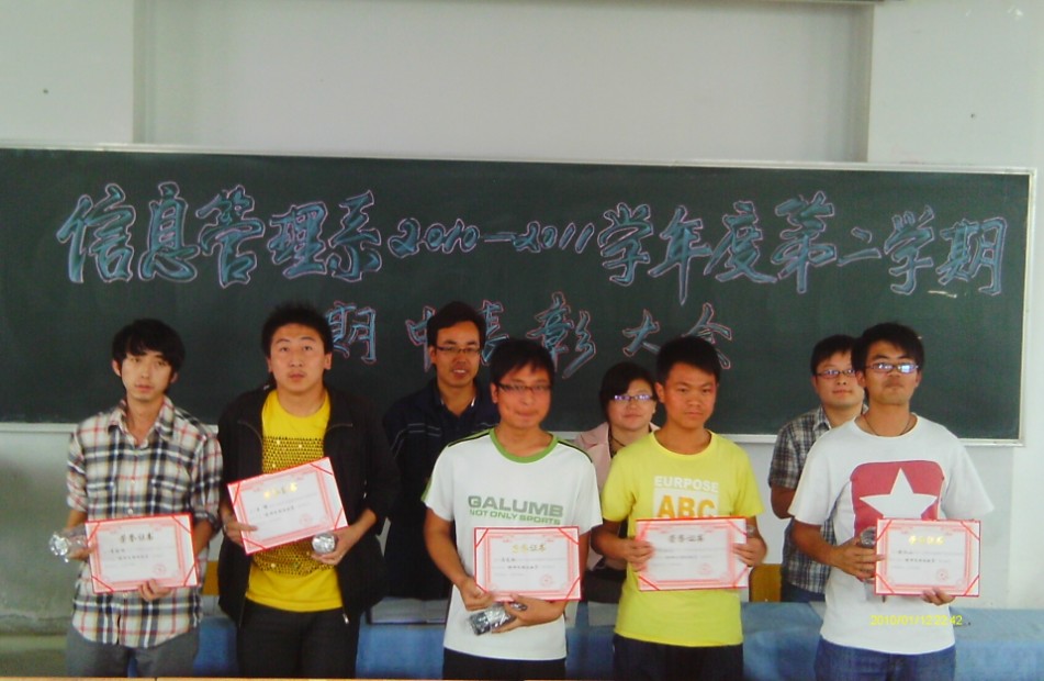 20日下午4:30,在博学楼215教室隆重举行了2010-2011学年第二学期期中表彰大会,系主任、党总支书记参加了会议。
