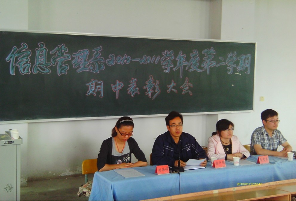 20日下午4:30,在博学楼215教室隆重举行了2010-2011学年第二学期期中表彰大会,系主任、党总支书记参加了会议。