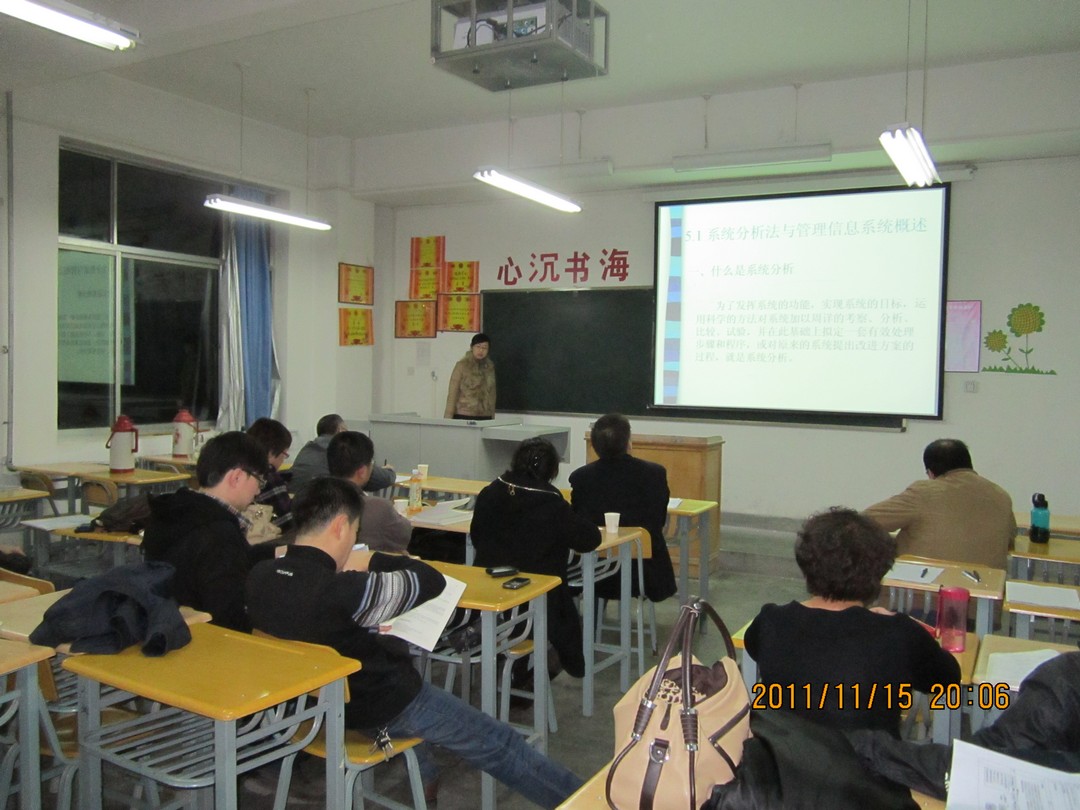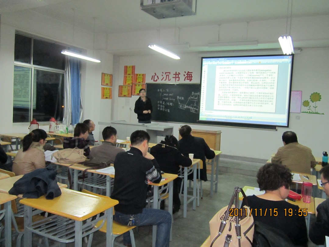 2011年11月15日晚18:00-21:30,我系举行了教学基本功竞赛,该竞赛也是全院教学基本功竞赛的初赛,我系全体教师都参加了竞赛。我系教授委员会的三位教授专程赶来担任了这次竞赛的评委。担任评委的还有常雪琴主任和于泳海副主任。