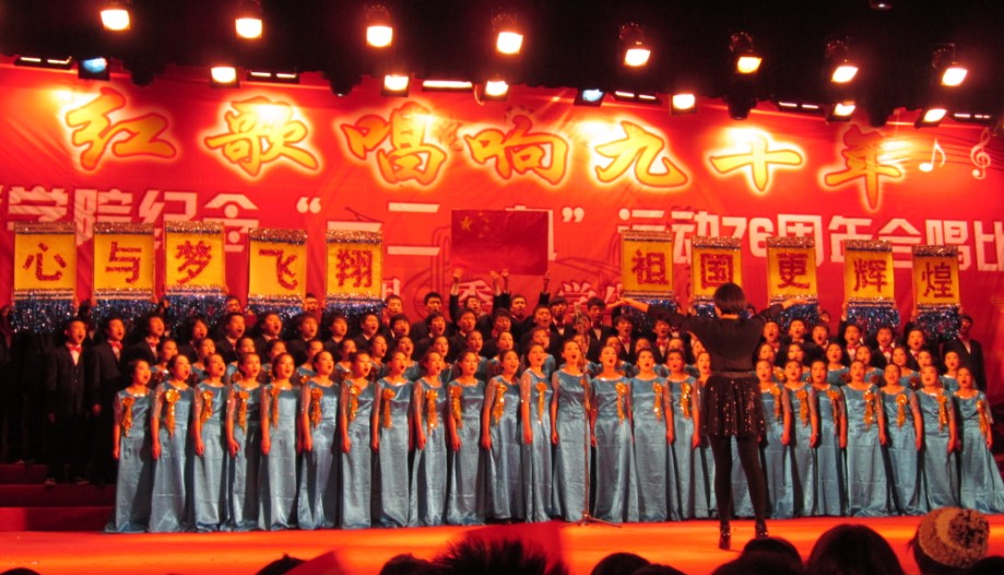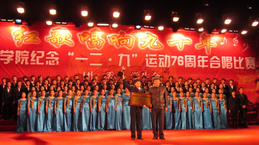 12月9日晚,由我院团委、学生会主办的“红歌唱响九十年” ——陇桥学院纪念“一二·九”运动76周年合唱比赛在学院体育馆举行。学院领导,机关、各系、教学部的百余名老师与4000余名学生一起观看了合唱比赛。