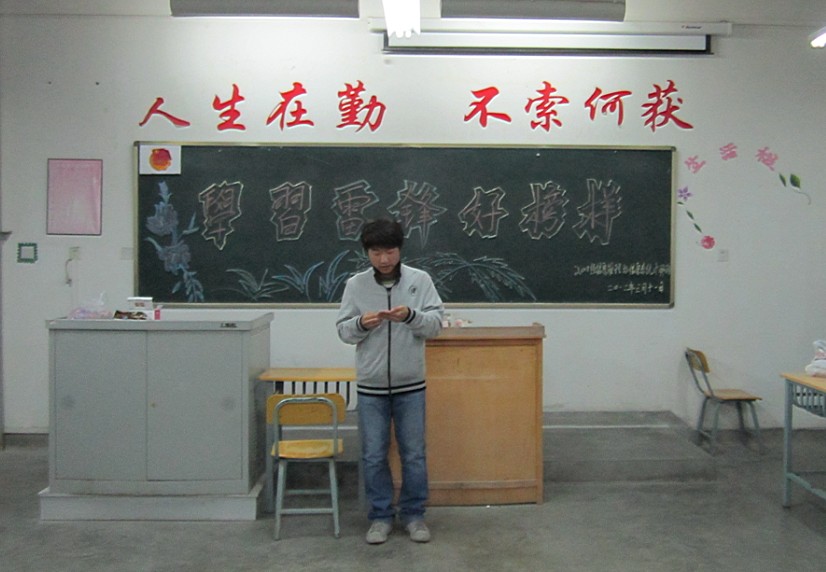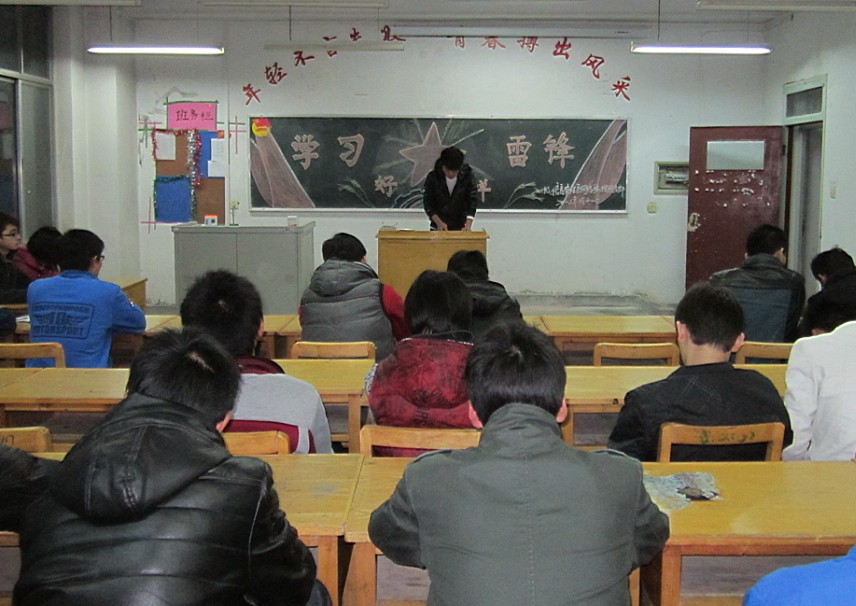 团会通过讲读雷锋日记、学习雷锋先进事迹、表演雷锋小品等多种形式在各班级的认真准备下如火如荼地开展起来,生动、形象地将雷锋精神传递到每位学子心中。11级信本班同学在团会中自编自导的小品《学雷锋》生动形象地再现了种种缺失雷锋精神的现象,风趣幽默的表演引发同学们了对雷锋精神真谛的感悟,大家还举行了齐唱《学习雷锋好榜样》;11级电子商务班的同学们举行了雷锋事迹演讲比赛,大家追忆了雷锋的先进事迹;11级网络工程班举行了“雷锋就在我们身边”为主题的好人好事故事宣讲;10级信管合班的同学们举行了雷锋生平事迹问答,进行了庄严宣誓,立志要"热心公益、服务人民,脚踏实地、一丝不苟,立足本职、刻苦学习"