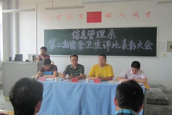 会上,公寓管理科花科长对我系学生宿舍卫生检查活动给予了充分肯定,他强调,学生宿舍是学生学习生活地重要场所,宿舍的卫生环境直接影响到学生的学习生活,平时通过检查督促,宿舍卫生有了较大地改观,为学生创建了一个干净舒适地生活环境。同时,希望广大学生以这次卫生检查活动为契机,巩固宿舍卫生检查评比活动取得的成效,养成良好的行为习惯,塑造文明儒雅的大学生形象;另外,宿舍成员之间友爱团结,互帮互助,搞好宿舍卫生的基础上更要增强防火防盗意识。