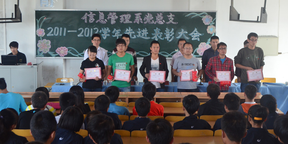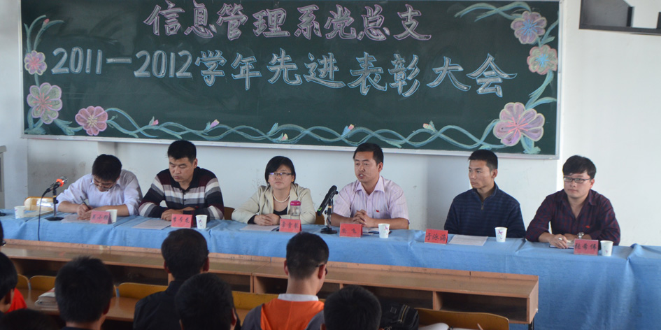 2012年9月19日下午4:30,我系在2号教学楼315教室隆重举行信息管理系党总支2011-2012学年先进表彰大会。会议由我系党政秘书关小强老师主持,学院党委工作部副部长尚飞、系主任于泳海、系党总支书记常雪琴、系党总支副书记兼行政副主任李号龙、系团总支书记张希伟出席了会议。