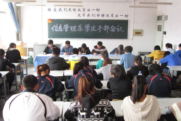 系党总支常雪琴书记对本次会议做了总结讲话,她在讲话中强调,学生干部必须要有优异的学习成绩,同时要抓住担任学生干部的机会来锻炼自己、充实自己,带领和督促大家养成良好的行为习惯,保持宿舍卫生干净、整洁,各班班委要着手成立综合测评和国家奖助学金评议小组,并认真、公正的做好各项评议工作。