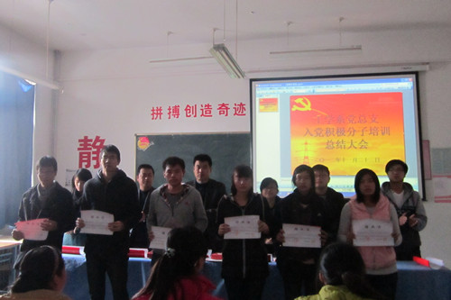 随后,与会领导和老师为结业学员颁发了党校结业证书,并为荣获学院党校第四十六期入党积极分子培训班“优秀学员”的杨羚、高霞霞、陈炳旭三位同学颁发了荣誉证书和奖品。